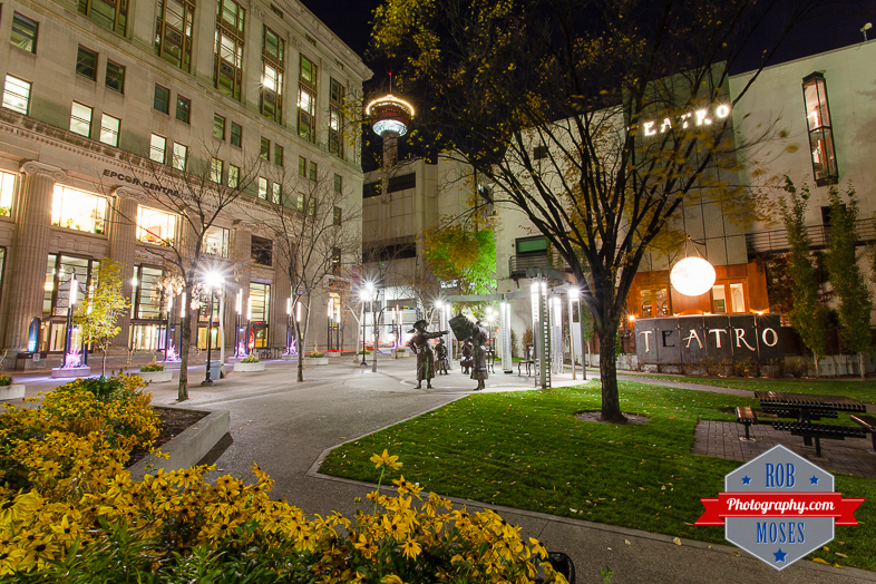 This shot was taken right before the snow started to fly in Calgary. It is the south-west corner of the Olympic Plaza. I really like the old building on the left side of the frame. I wish there was more of these types of buildings still around in Calgary.