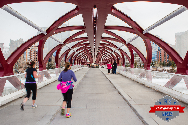 Calgary Famous Peace Bridge running runners jog jogging woman girls tunnle modern - Rob Moses Photography - Vancouver Seattle Photographer Photographers-1Camera: Canon 6D & 28mm 1.8 ~ Settings: 1/25th – f/22 – ISO 100. (I used a slow shutter speed on this photo so you could see the movement of the runners)