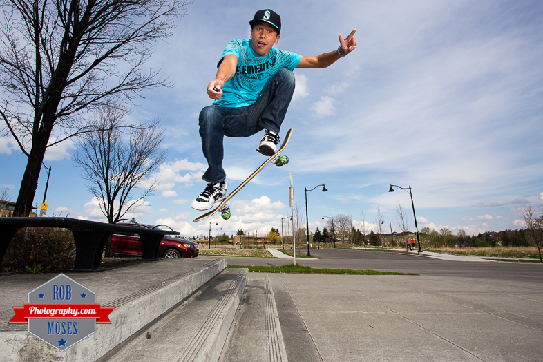 Good question! It took quite a lot of tries, because I would do the ollie down the stairs and try to fire the camera with the RC-1 remote, but the camera wouldn’t fire. I think because I wasn’t pointing it good enough at the camera. There was also a bunch of shots I didn’t like because I was unhappy with the point the shot was taken. Like the shutter went off a little late or a little to early haha.