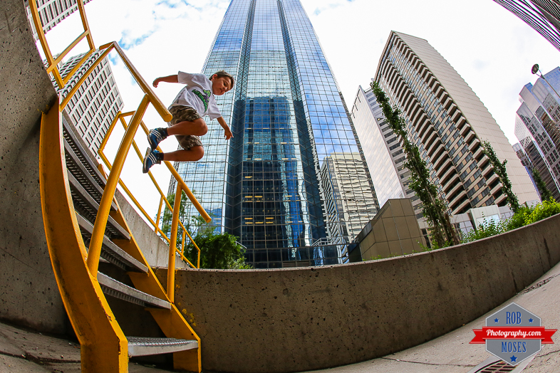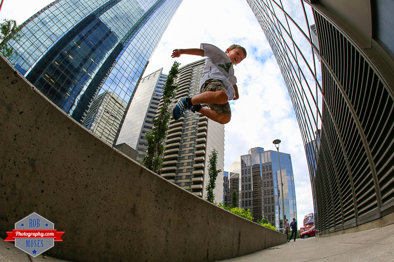 Yesterday evening my son Joshua and I stopped off downtown to shoot a couple of photos. Joshua decided he felt like jumping around, so I snapped a couple of photos of him doing his best Parkour impression 🙂