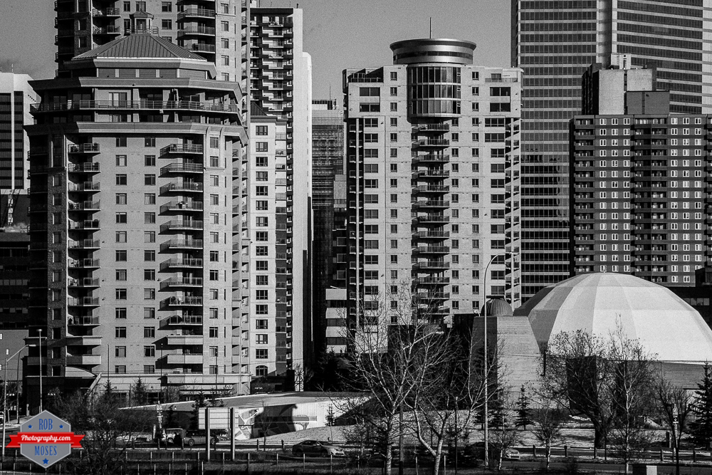 YYC urban buildings apartments westside city life black & white Rob Moses Photography Calgary Photographer Photographers Native American Famous un celebrity Tlingit Ojibawa Top Popular Best Good CanadianCamera: Canon 6D & 70-200mm f4 IS @ 155mm ~ Settings: f/22 – 1/400th – ISO 800