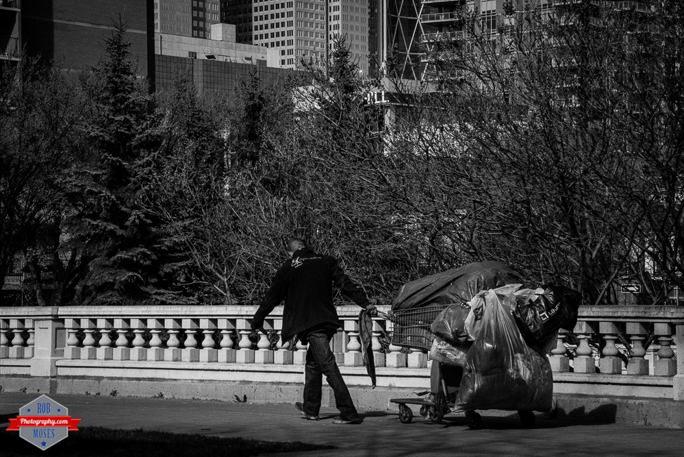 YYC Beaulieu Gardens homeless shopping cart bags working walking sunny sun spring Rob Moses Photography Calgary Photographer Photographers Native American Famous un celebrity Tlingit Ojibawa Top Popular Best Good Canadian street