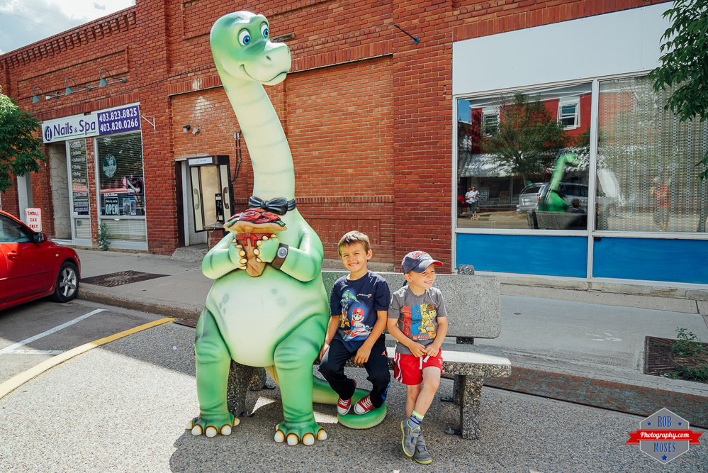 Over the weekend my 2 boys and I took an hour and half drive north east of Calgary to Drumheller, Alberta. They have a wonderful dinosaur museum in Drumeller and my boys loved it! The town itself is pretty small and has a whole dinosaur theme going on, which is fun for the kids. As you can see from the first picture, they have a massive T-Rex built by a park. You can walk up inside of the T-Rex and take a look out side of his mouth. I didn’t snap any pictures from there, because it was way to packed. I’ll grab a shot from the mouth next time though ;).