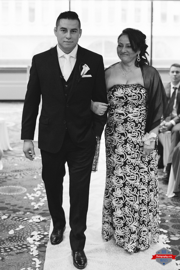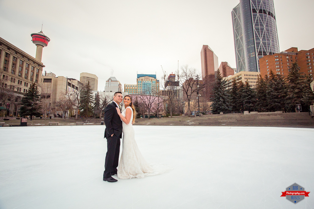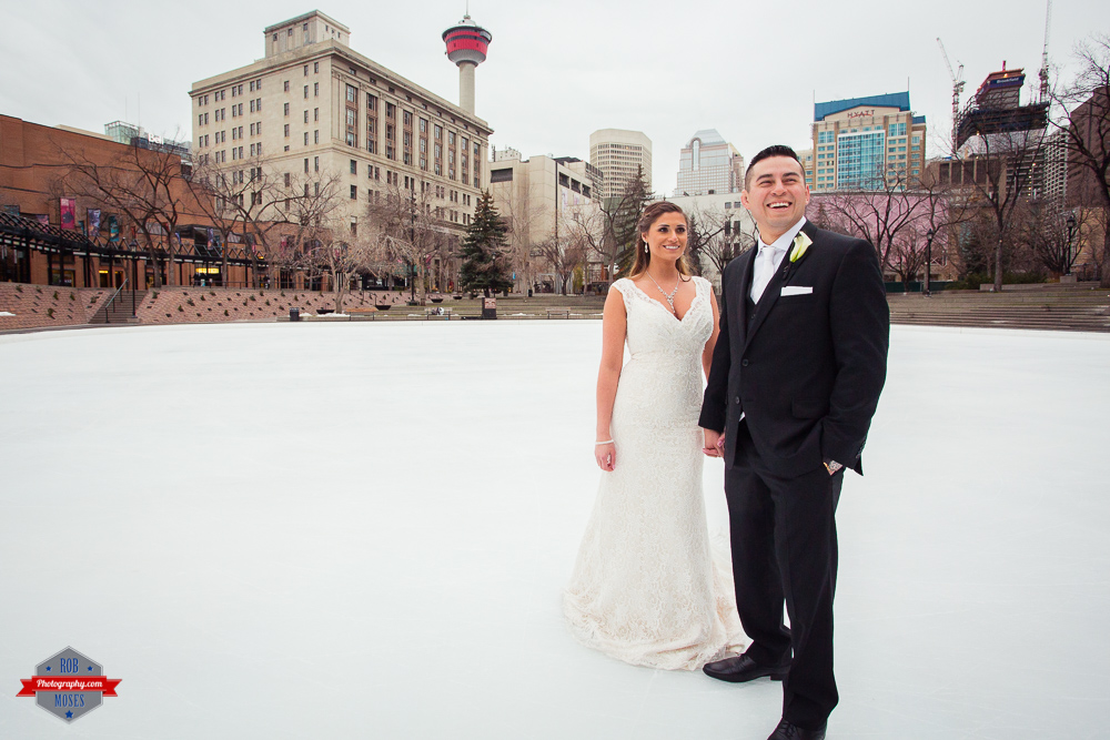 The whole wedding was downtown in Calgary. Tamilla was getting ready in one room in the Marriott hotel and Alain was in another. This made getting pictures of each party rather easy. Even better yet, the ceremony and reception was just downstairs on the 2nd floor! After the ceremony we took to the streets of Calgary and shot as many photos as we could before everyone got uncomfortable cold. I think everyone had fun and no one got frost bite, so I’d say it was successful shoot.