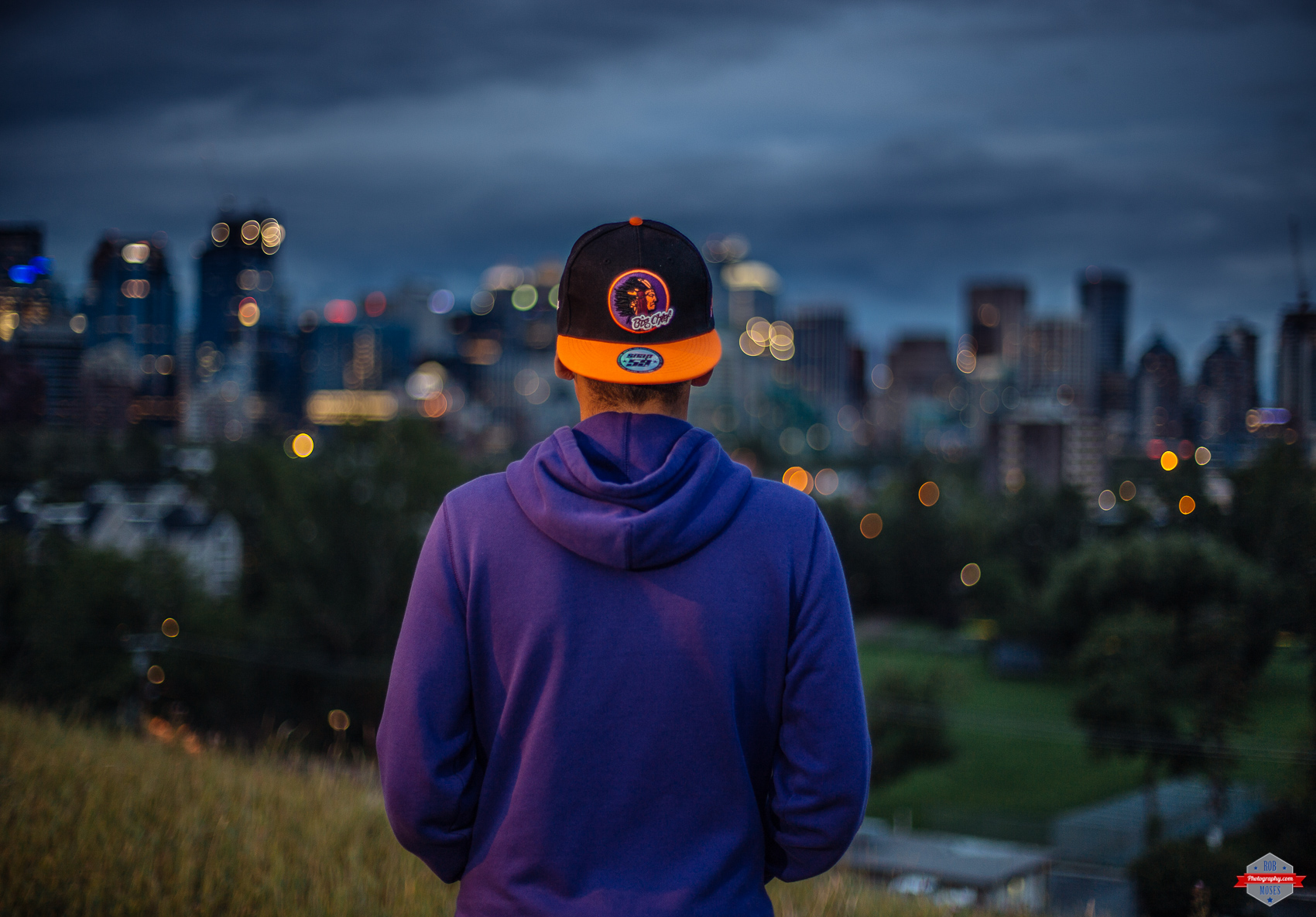 I shot this one on Saturday night. It had been raining all day and the clouds looked rather menacing. I thought rather than just another city shot, I might hop in front of the camera to add a little something to the photo. I was shooting with a friend of mine and he had a 430EX Speedlite on him with some Radio Poppers flash triggers, so we set the flash up. We used the one flash to camera left with a small defuser on the unit. I would have preferred it if there was more lights on in the buildings, but I still like the way it turned out.