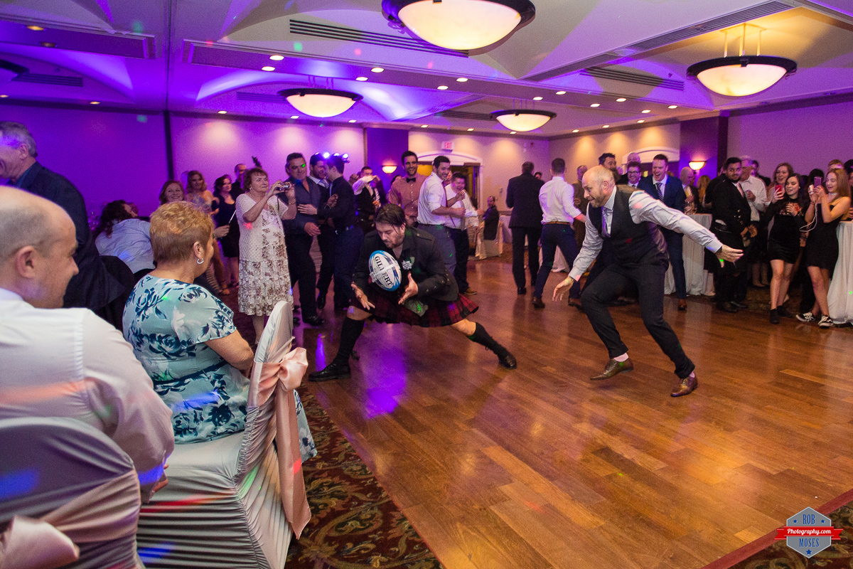 Clearly Lindsay and Vinny both love Rugby! Oh and their cute dog, who played a big part in their wedding. When I first met with Lindsay and Vinny they told me they wanted to do some type of Ruby wedding shots and right away I was excited, because I had never done any wedding shots like that and I knew it would be fun. When wedding time came around it wasn’t often I didn’t see that ruby ball kicking around and their dog was definitely there for everything too. Lindsay and Vinny were super fun and easy to work with. Their wedding party and parents were a joy to be around and I think we all had a wonderful time together!