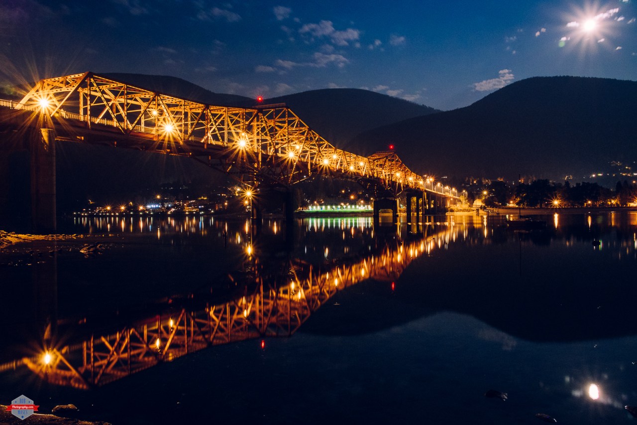 I spent last weekend in Nelson, BC. I didn’t get out to shoot photos as much as I would have liked, but I did get out one night to take this picture of the Big Orange Bridge. The moonlight was especially bright and it really added something special to the picture. I shot about 5 different angles before landing at this one. Once I saw this shot on my LCD, I knew it wasn’t going to get any better than that.