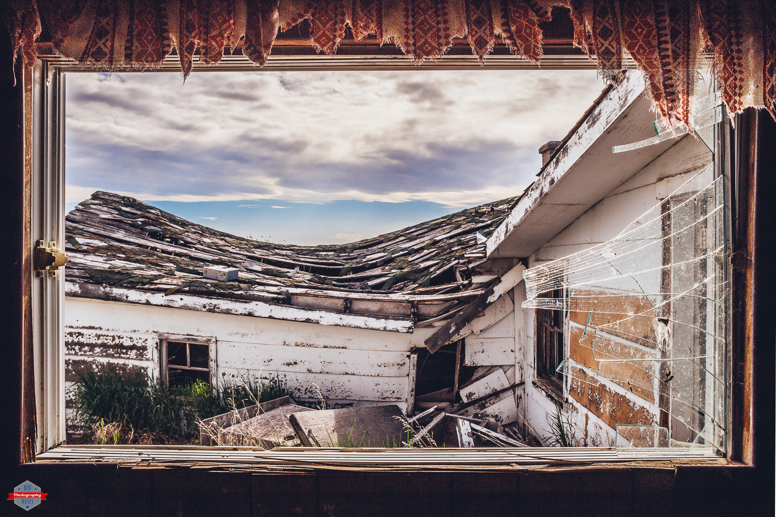 I shot this photo out of the kitchen window of an abandoned house. It’s crazy to think that one day a very long time ago some one stood here doing dishes and looked out to the side of their beautiful new house with pride and joy. And now this, a barley standing shell of what it once was. The roof just barely hanging on and dipping down into the rubble of forgotten time.