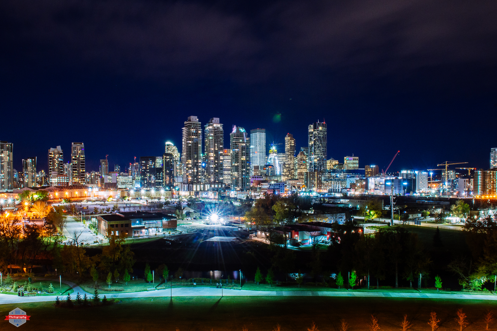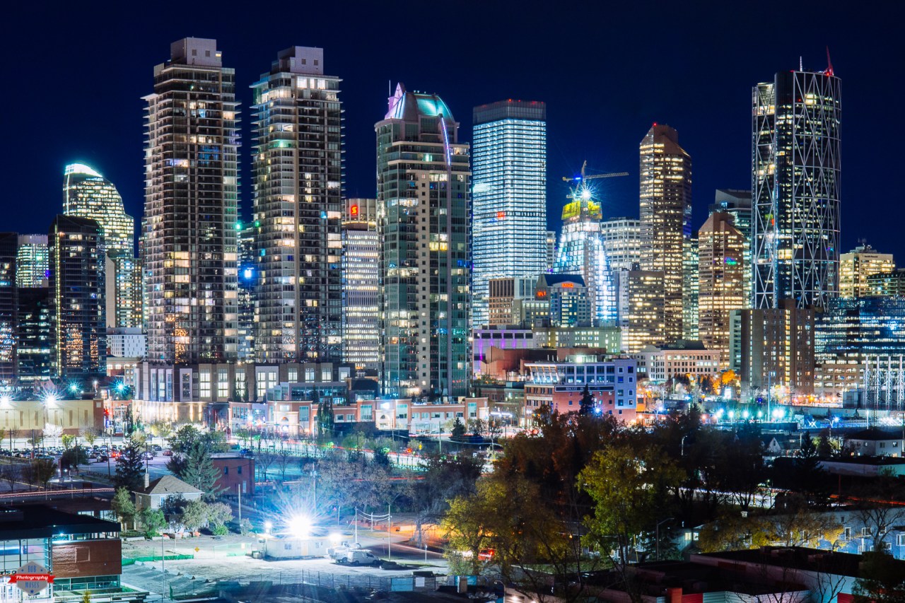 The Calgary skyline is forever changing. There is a new building going up that is beside the bright one in the middle that is going to be awesome. The new building kind of turns as it goes up. I’m sure that’s going to be a wonderful building to get ultra wide angle shots of. There is also another big project going on near the bottom of the photo where the bright light is. I’m not sure what’s happening, but they got what looks like the beginning of a band shell or something along those lines. Whatever it is they are doing down there I’m sure it’s going to be great! I can’t wait to see it when it’s done, I’ll probably have to bust out the ol fisheye for that one. 😉