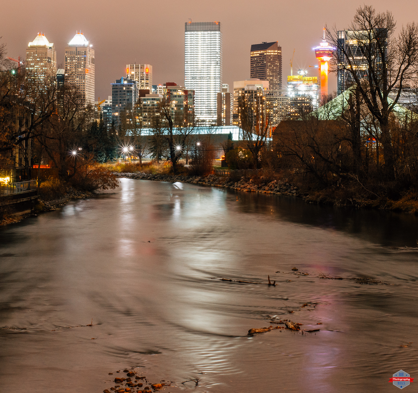 You can’t tell from this picture, but there was light drizzle of rain coming down when I shot this photo. As you can tell from the sky it was quite overcast that night, which wasn’t a bad thing because it reflected the light well. On these dark cold nights I’ll take any light I can get!