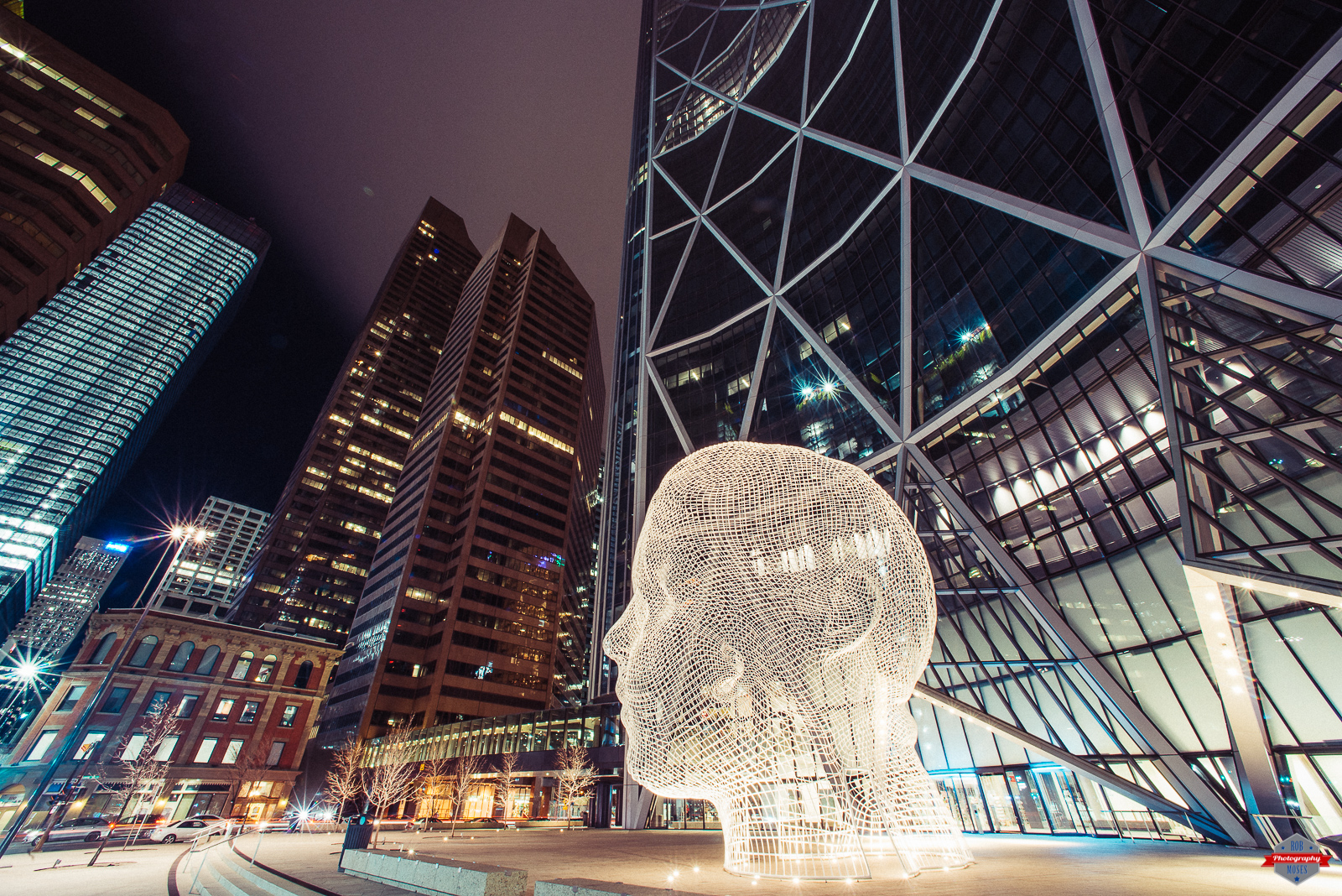 This gigantic public art piece downtown in Calgary is a very popular photo stop for locals and tourist. It is with good reason too because the head is awesome! Security around this head is a little overboard though. For instance, don’t even think of climbing on it or even pretending to climb, security will be out there in a hurry busting your ass! haha. Also, they won’t let you use a tripod anywhere near it or on the property of the building, so you have to shoot your tripod photos from the sidewalk. I don’t know what that’s all bout, but whatever. Anyhow, the head is still cool and I like taking pictures of it.