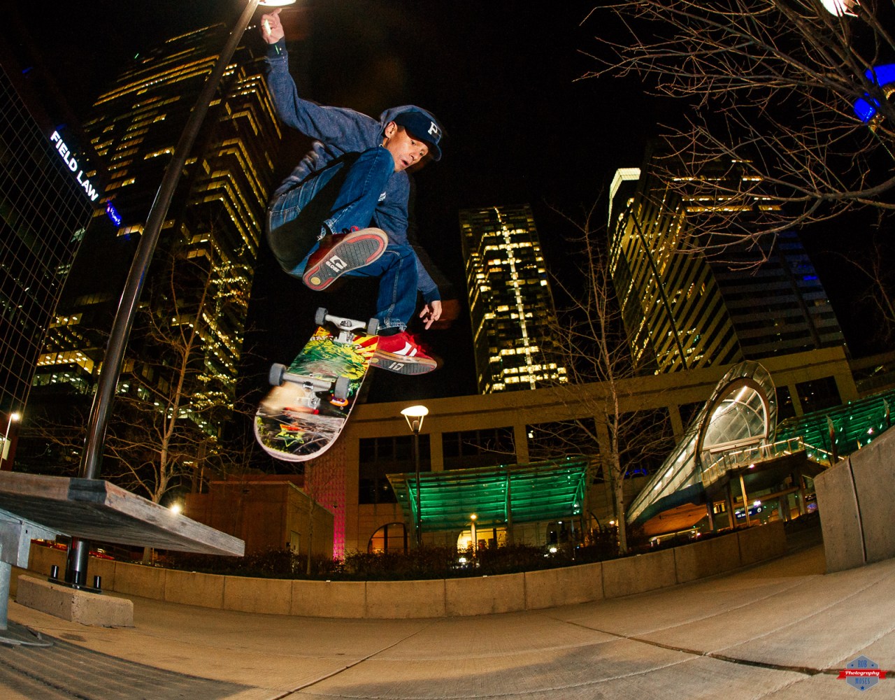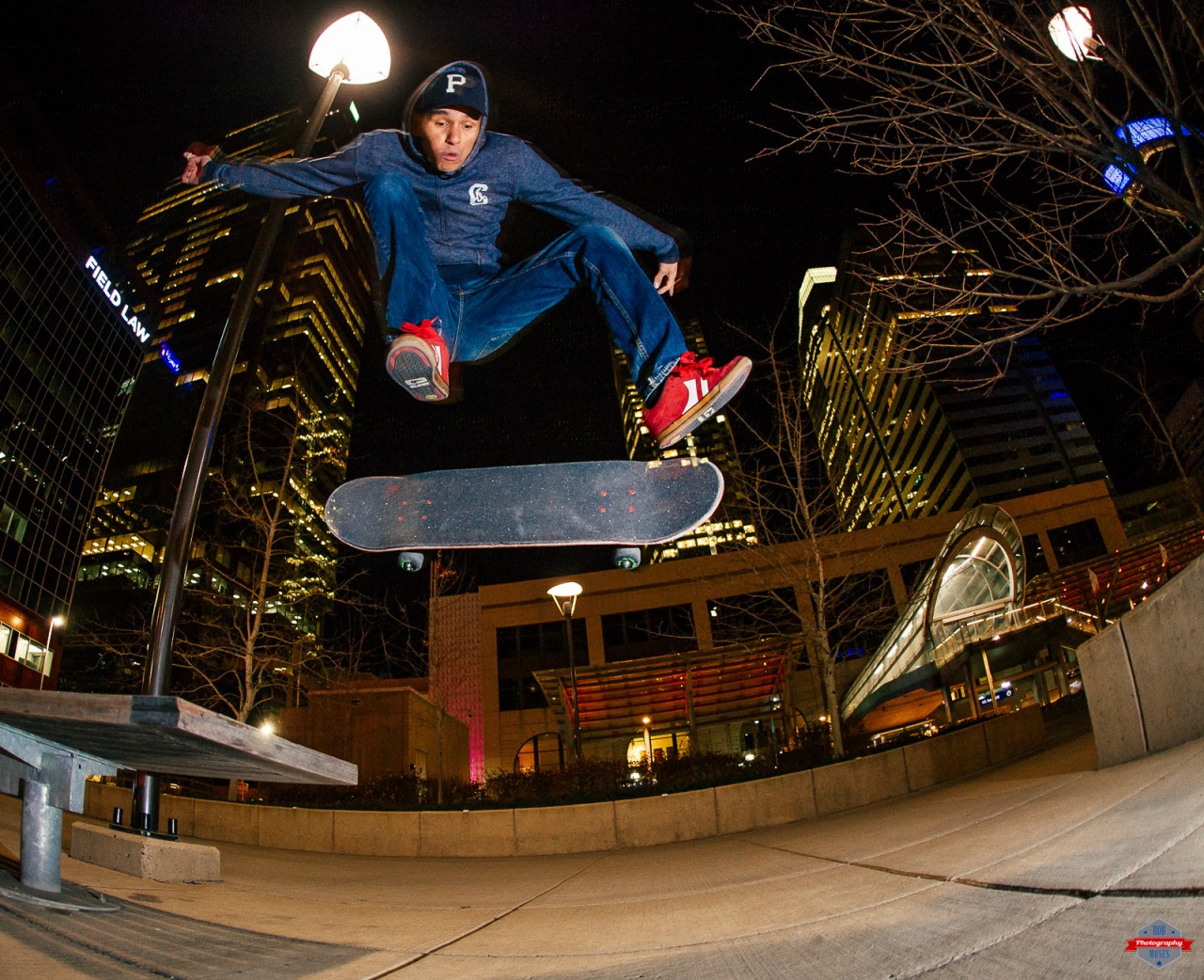 I shot these photos last night with the help of a friend. I set up the shot with on flash to camera right. I had my friend hit the shutter button for me while I did the skateboarding. ๐ Thanks Nathan!