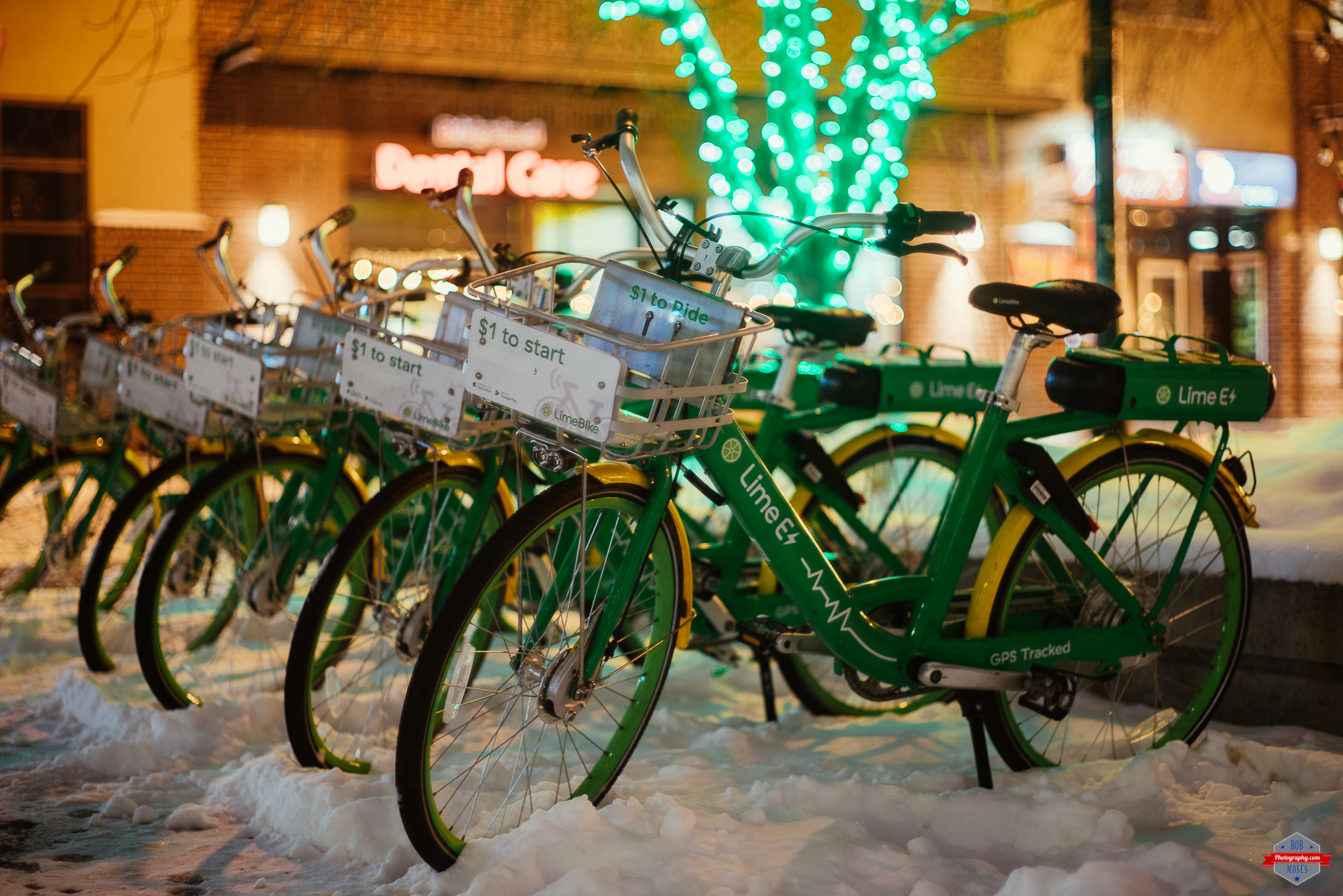 So if you live in any big city in North America I’m sure you go some kind of bike sharing/renting thing going on. Here in Calgary we got Lime Bikes. This a fun idea and I’m sure it comes in handy during the summer, but right now when there is snow and ice everywhere I can’t imagine many people will be riding these things around. Anyhow, they are bright and all over the place so I took a couple pictures along the way.