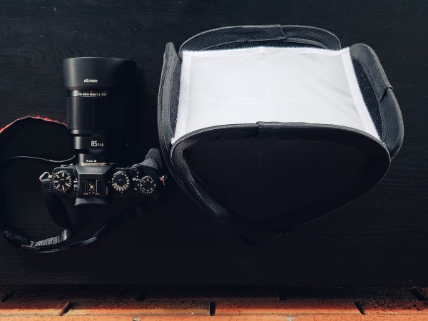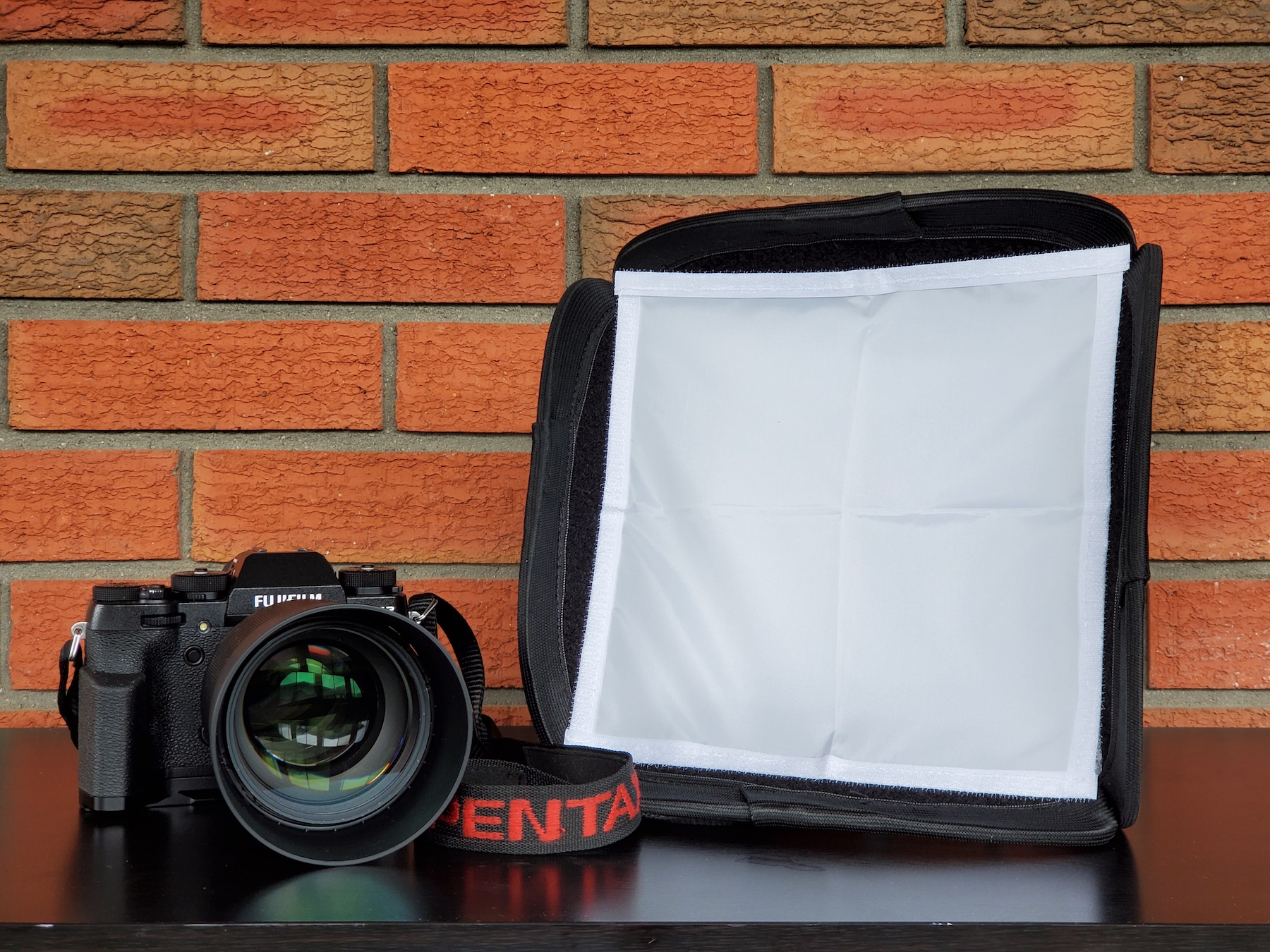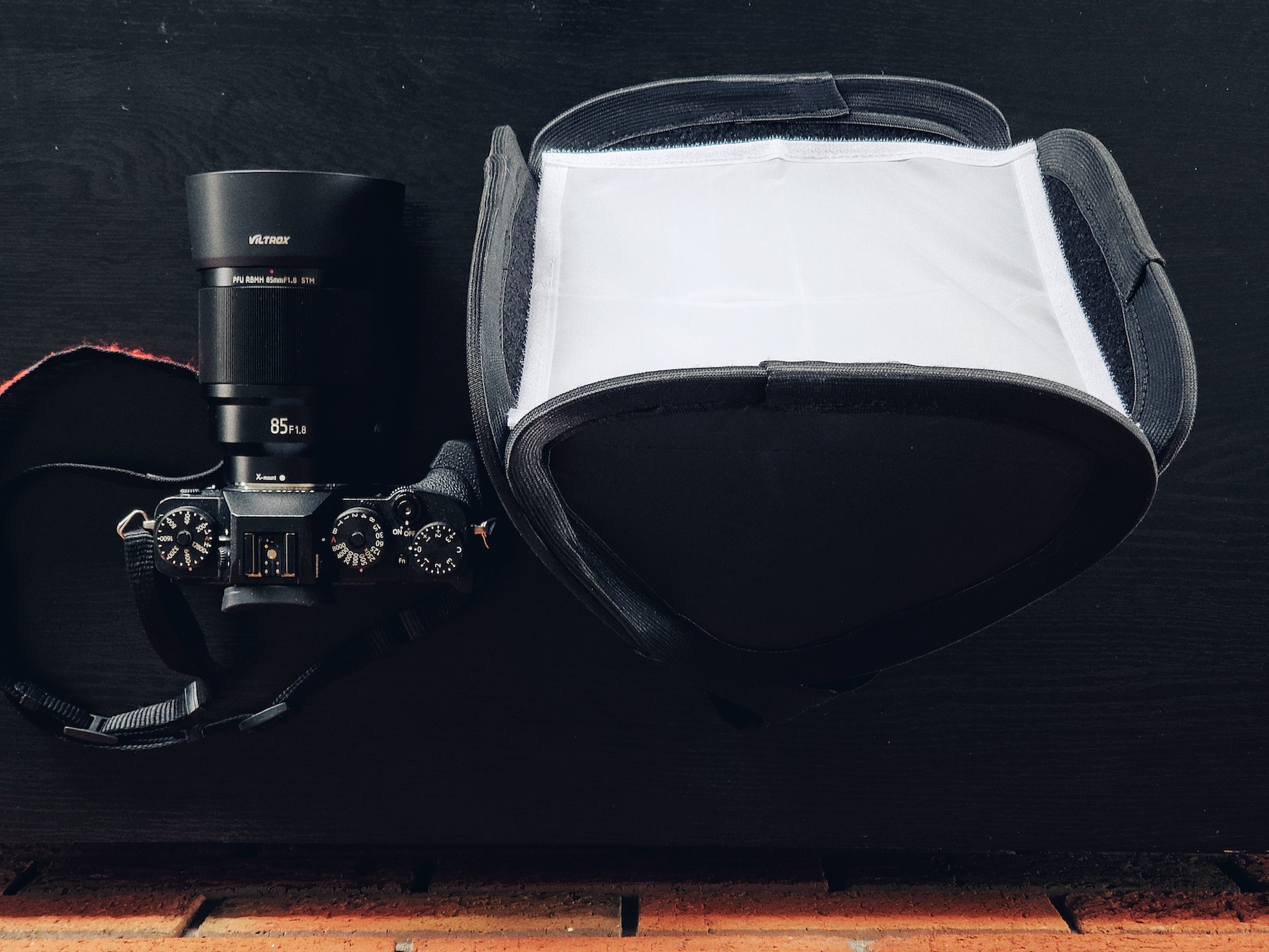 I ran to get my gear together as I knew the sky was minutes away from turning pink. I grabbed my X-T2 and my Viltrox 85mm f/1.8. I didn’t have time to set up an flash with a big umbrella, so I decided to use this tiny portable softbox modifier I had laying around. I whipped the tiny softbox on the flash, ran outside and got to snapping.