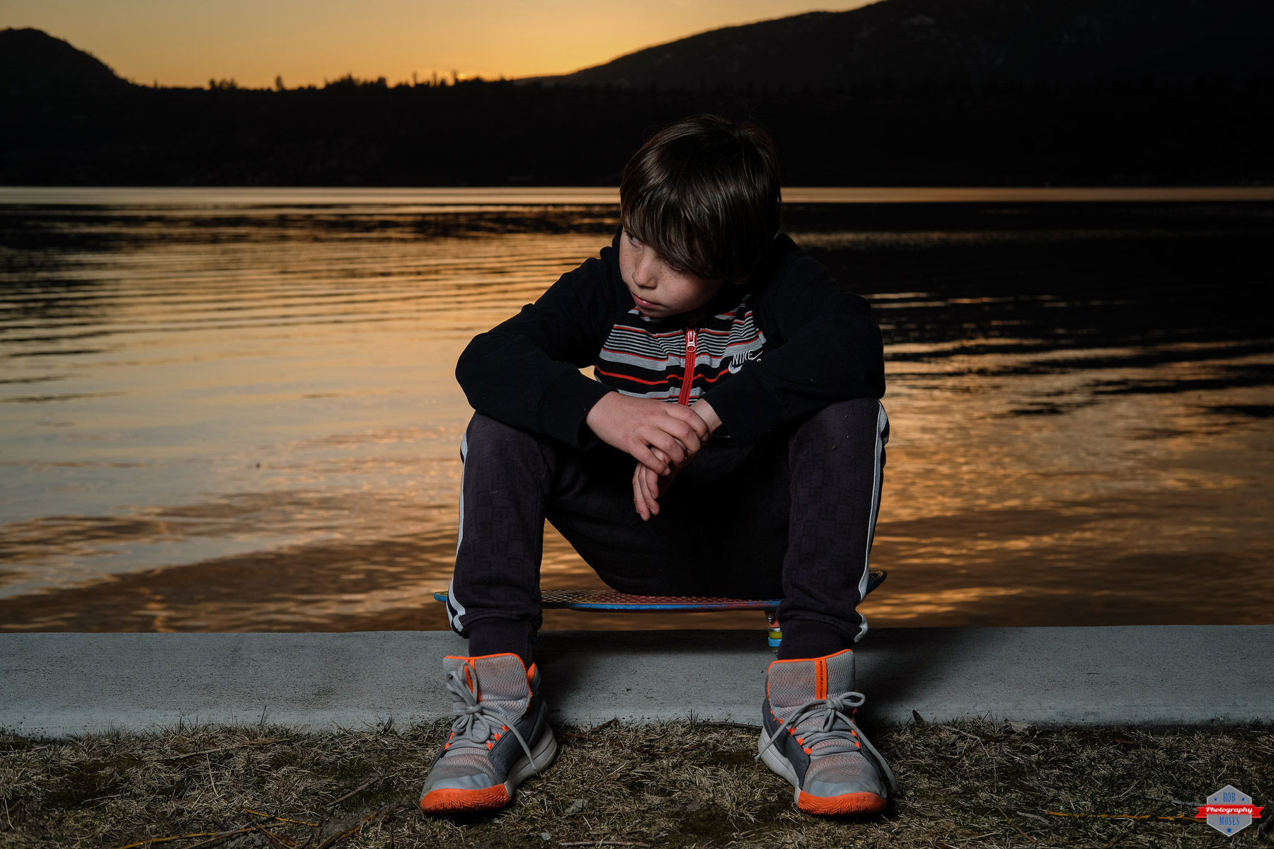 When Cameron and I were shooting photos down the street last week there was no way I wasn’t going to get a few of him facing the camera. I wasn’t after this golden light that night, I was waiting for the pink sky. However I figured since we were there it would be a shame to waste the beautiful background we had available to us.