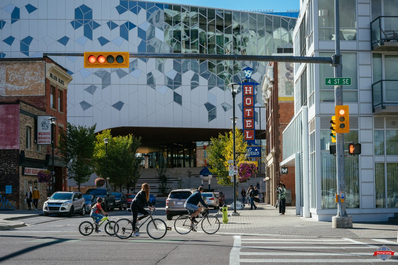 This block is one of my favourite blocks in the city and it has been since before the library(the modern white building in the back of the scene) opened. To camera left there used to be this crazy old gas station that looked like it hadn’t changed in about 60 years haha, it was amazing. I’ll have to see if I can find a picture of it. Anyhow, the area has changed a lot in recent years, but I love how they kept a few of the old buildings mixed in with the new ones. This street is more beautiful to me than it has ever been and I think the city has done a well job here.