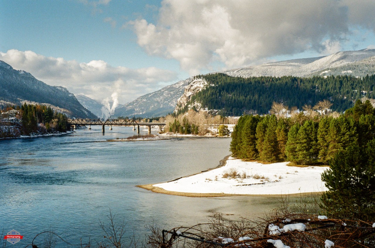 I shot this photo a couple weeks ago in Castlegar, British Columbia. I used my Minolta 800si & AF 50mm 1.7 with Kodak Gold 200 film. I find that this film really shines with nice light like this. I shot a bunch of other photos this same day with the same film, but the pictures just didn’t have this same kind of pop. The mix of sunlight and shadow make this an interesting picture to me. The beautiful landscape helps too. 😉