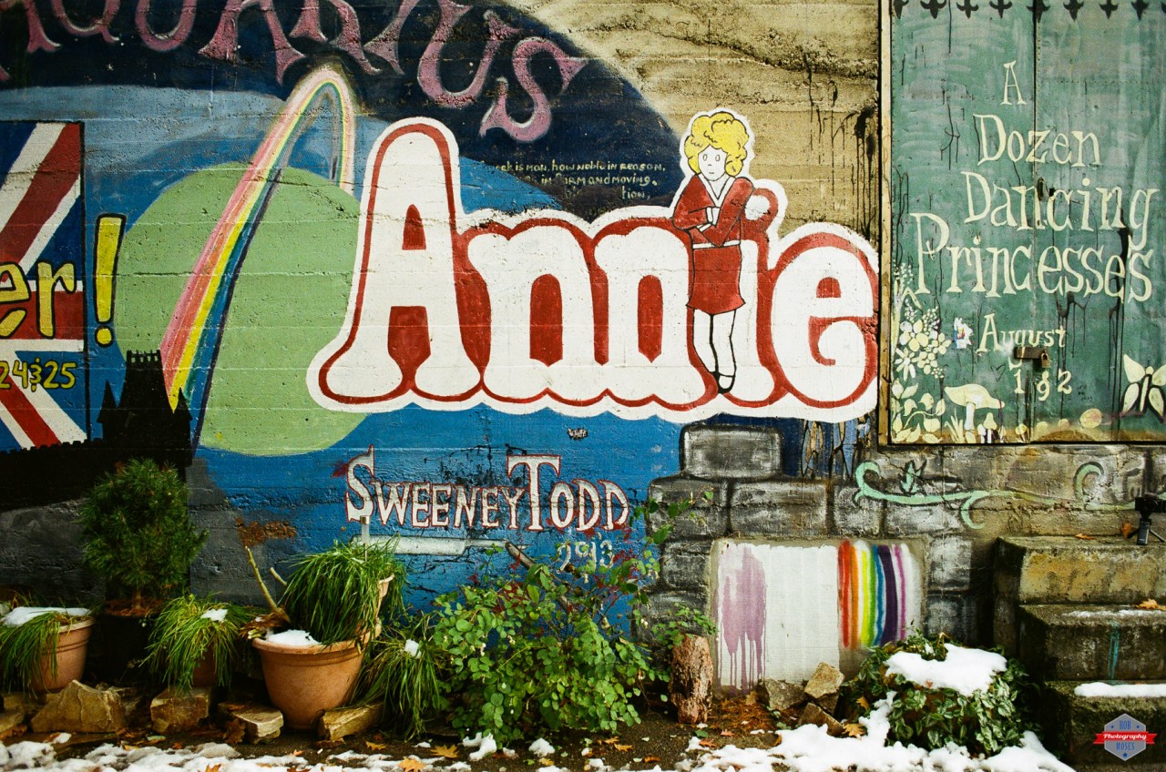 I always love looking down this alley because of the eclectic collection of painting in this one. This is actually down the same alley as the barber shop in the pervious post. This Annie painting always stands out to me though. If your walking by the Annie just kind of catches your eye. I’m assuming it catches the eye because it is something you might recognize? I suppose if you don’t recognize it then maybe it wouldn’t catch your eye? haha I don’t know, but whatever the case may be, I like it. 🙂