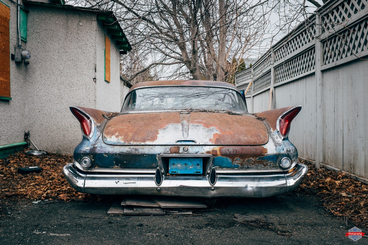 Looks like this is the end of the road for this old beauty. I saw this old abandoned car parked in the drive way of a boarded up house I when I was out for a walk one day. The house is in a nice neighbourhood so I’m assuming someone bought it and it just sitting on it before they redevelop the property or something. Anyhow, I’m glad I got this picture before they hauled everything way and tore the house down.