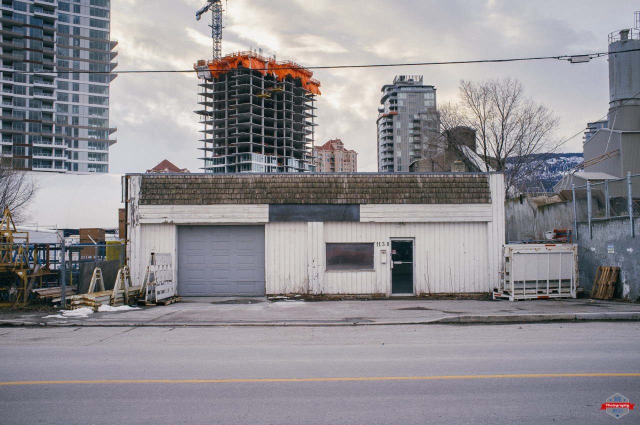 There is a lot of building going on in Kelowna right now and the city is changing. As I walked down this block I couldn’t help but notice the contrast between this little old industrial building and the new condos going up behind it. I wonder how long this building will last? I guess time will tell.
