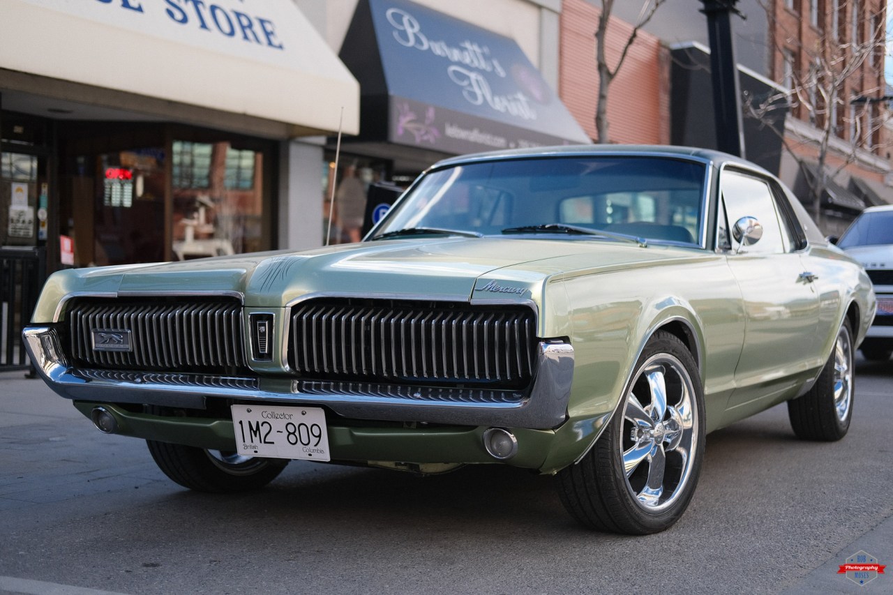 1. It appears to be a 1967 Mercury Cougar. This design was used for the Thunderbird before it was discontinued. You can say Mercury simply did a name change from Thunderbird to Cougar. The Cougar was the Mercury equivalent of the Mustang. In matter of fact, generation 1 and 2 of the Cougar used the same frame and parts used on the Mustang. Generations 3 and 4 of the Cougar used the same frame and parts used on the Ford Torino line.