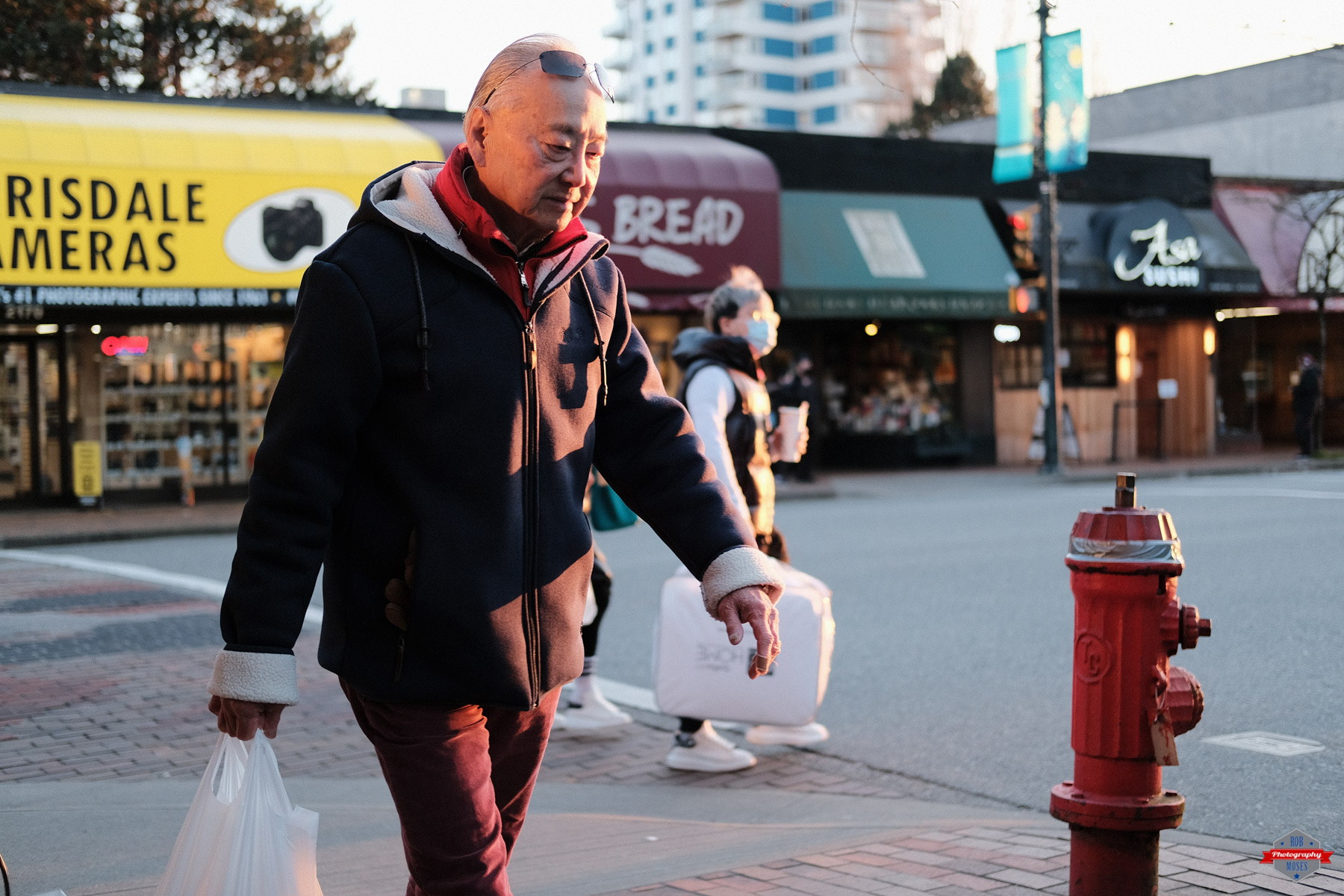 I was just hanging out at the Starbucks in Kerrisdale. I was sitting outside enjoying my coffee and as the sun was setting I just snapped a couple pictures. Sunset light is always so pleasing so I like that. The old guy walking by, well I don’t really have any kind of explanation for that one. I just had my camera in my hand and there he was, so I took a picture haha.