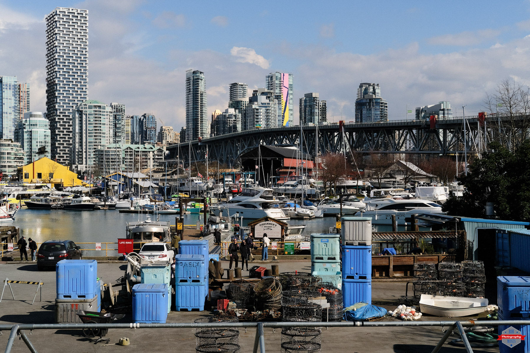 I decided to stop for this picture because I thought the foreground of crab traps and fishing equipment made for an interesting photo. Vancouver is such a modern city and to see this type of equipment in front of the city is interesting to me. So as I was shooting the photo I noticed this couple spot me and turn to pose! I love this kind of thing and I only wish I had zoom lens on at the time so I could have got in a little closer. I still like the picture though as it is though.