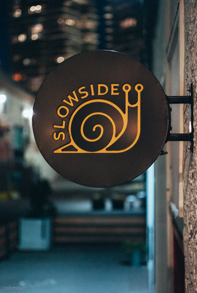 I was walking down this weird street in Kelowna the other night looking for a picture when I noticed this cute snail sign. I kinda had to climb on this little fence to get a proper shot of it. I was shooting with my Leica M8 with a 50mm f2 lens which is manual focus, so nailing focus and while balancing on a thin board was a challenge haha. I’m always up for a challenge thought and to be honest the balance act made taking the picture more fun. In hindsight I should have got a picture of the fence I was balancing on. Ah well, next time. 😉