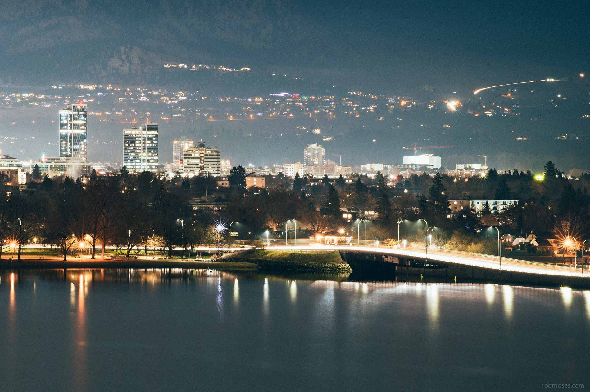 There are so many different lights going on in this picture. The street lights on the street and in the park by the lake and then this really bright section in the middle. You can see the light just pouring out of the middle layer of the photo. I was tempted to tone that down, but I figured I’d leave it because that’s what it does. Then all the smaller lights climbing up the mountain in the background. I enjoy all the lights, but I do wish the city would change out the weird orange ones in the park haha.